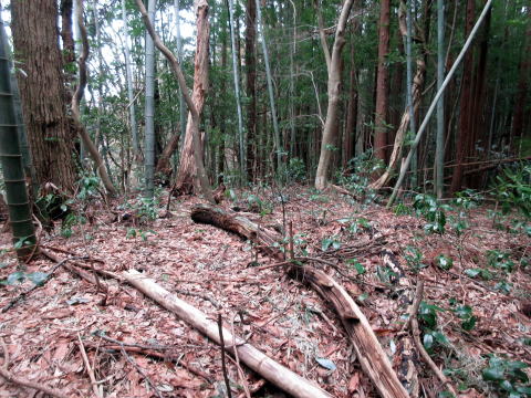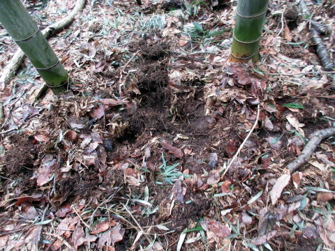 | 尾根 | イノシシが掘った跡 |