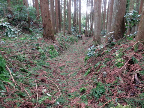 | 上桐城跡山頂 | 登山道で下山して西登山口へ |