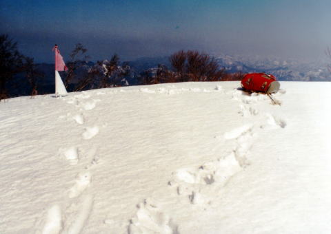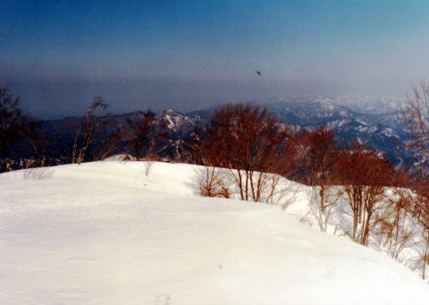 リフト乗り場(リフト0:15)→リフト終点(リフト0:35)→蒲萄山山頂(スキー0:20)→リフト乗り場 リフトを2本乗り継いで終点の650mの標高に着いた。 そこから尾根づたいにスキーで登ったが、ピークを2つ登って山頂に着いた。 当日は、スキーで登ったが、ワカンなしで登山できる状態であった。 山頂は日本海側からスキー場側へ雪庇が張り出していた。 雪はリフト終点で1m50p、山頂で2mくらいであった。 山頂は、雪があるため、360度の展望があり、日本海側に少し木々があったが、村上方向に新保岳へ続く山々が見えた。 山頂でアマチュア無線を5時間運用してスキーで下山した。 |