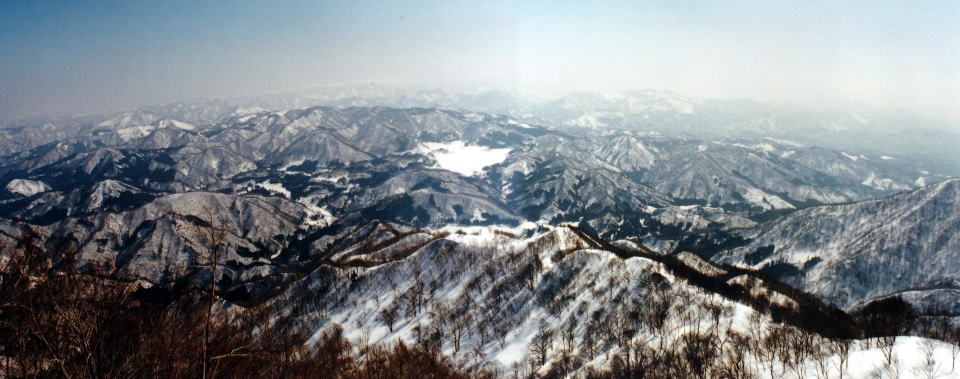 | 蒲萄山山頂から東方面・朝日連峰が霞んでいた。 |