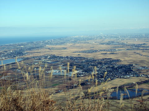 ここからは、西川町や新潟方面の平野が一望できる。