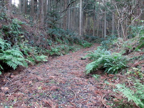 | 尾根の状況 | ツバキの尾根を過ぎると車道が見えた |