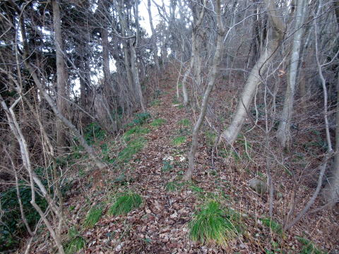 | 急斜面を登る | 右側が杉林の登山道 |