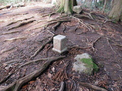 | 山頂から向陽観音堂へ | 向陽観音堂脇の二等三角点 |
