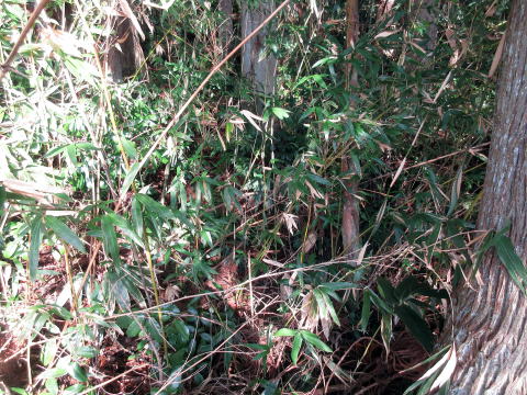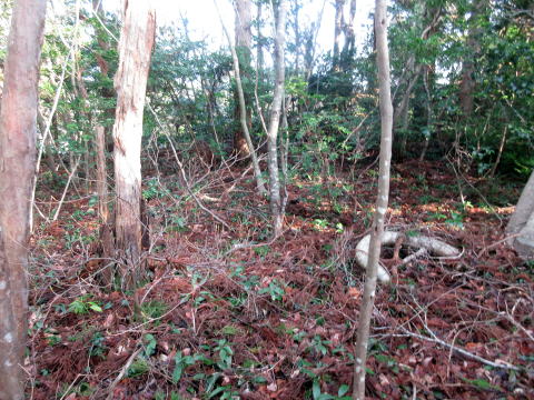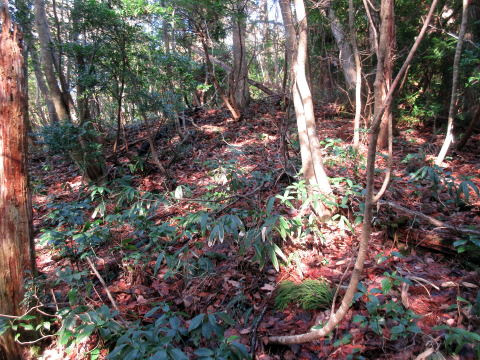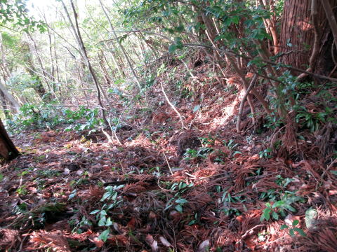 | 空堀のような場所から急斜面で山頂へ | 万能寺城跡山頂 |