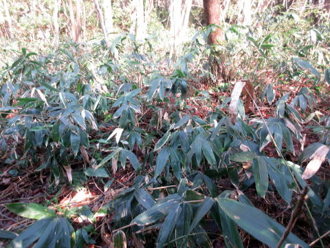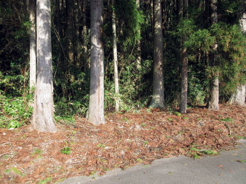 駐車場所(0:01)→斜面取り付き(0:10)→万能寺除籍山頂(0:08)→車道(0:01)→駐車場所 万能寺城跡の東南側に車道があったので駐車場所を探すと寺泊松田側に駐車スペースがあったのでここに駐車した。 車道を歩いて取り付き場所を探したが、踏み跡等は無かったので山頂に近い場所から山頂を目指した。 藪は薄く、楽に登れたが田頭側の斜面は杉林となっていた。 すぐに山頂に着いたが標識等は無く、木々で展望は無かった。 一番高い場所を山頂として往路を下山した。 |